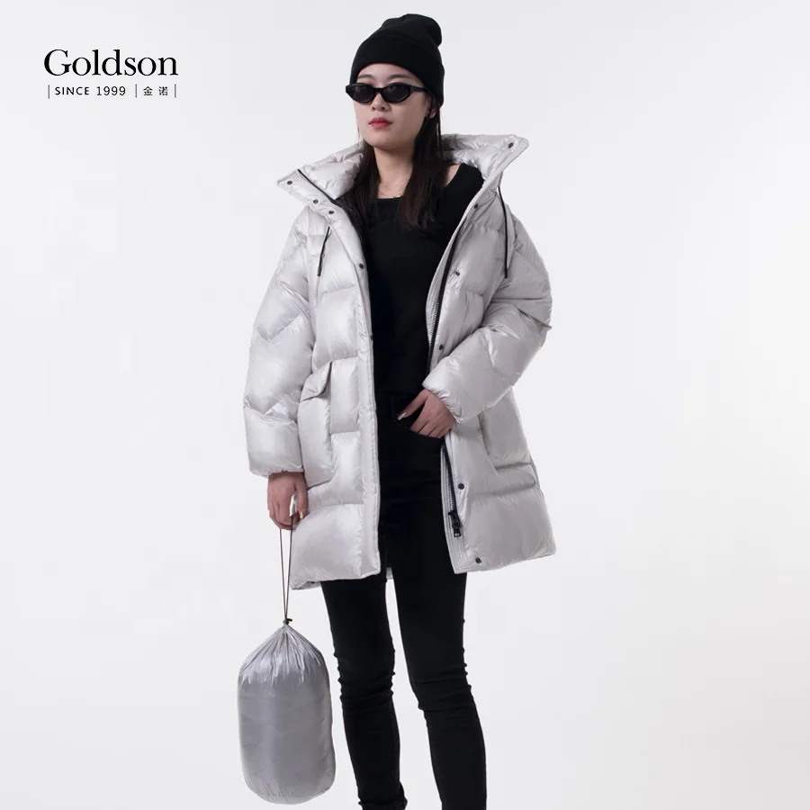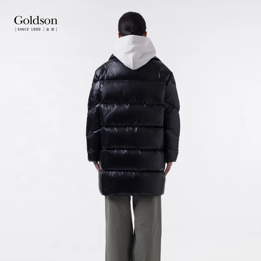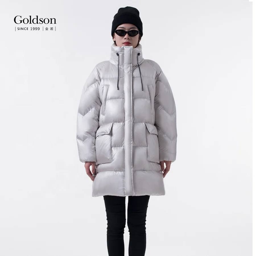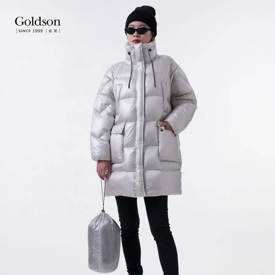 Woman Mandarin Collar With Stopper Cozy Fluffy Puffer Shinny Puffer Duck Down Jacket for Winter